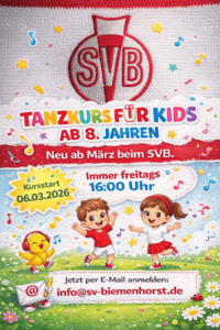 Der SV Biemenhorst bietet einen Miniclub an. Kinder ab 2 Jahren (bzw. die bis Dezember 2025 zwei Jahre alt werden), können dienstags und freitags von 8.30 Uhr bis 11 Uhr spielen, basteln, singen und sich bewegen. Ziel ist es, dass die Kinder ab 2 Jahren nach einiger Zeit alleine den Miniclub besuchen.