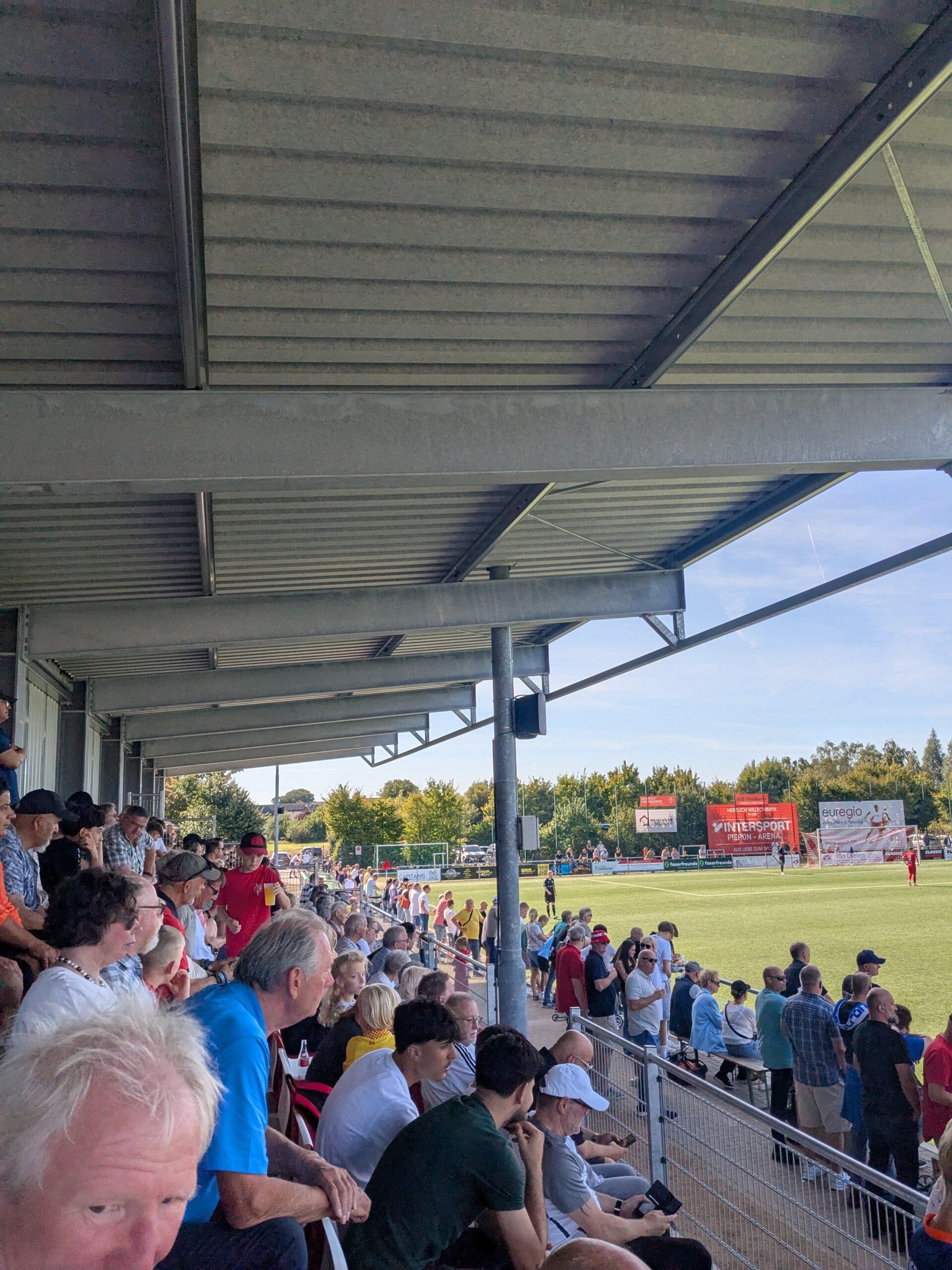 Mit dem Heimspiel gegen ‚ETB Schwarz-Weiß Essen‘ ist am 07.09.2025 unsere neue Tribüne eingeweiht worden. Wie man sehen kann, haben viele Zuschauer die dort vorhandenen Steh- und Sitzplätze genutzt. Wir hoffen, dass dieser Ort auch in der Zukunft großen Anklang findet.
