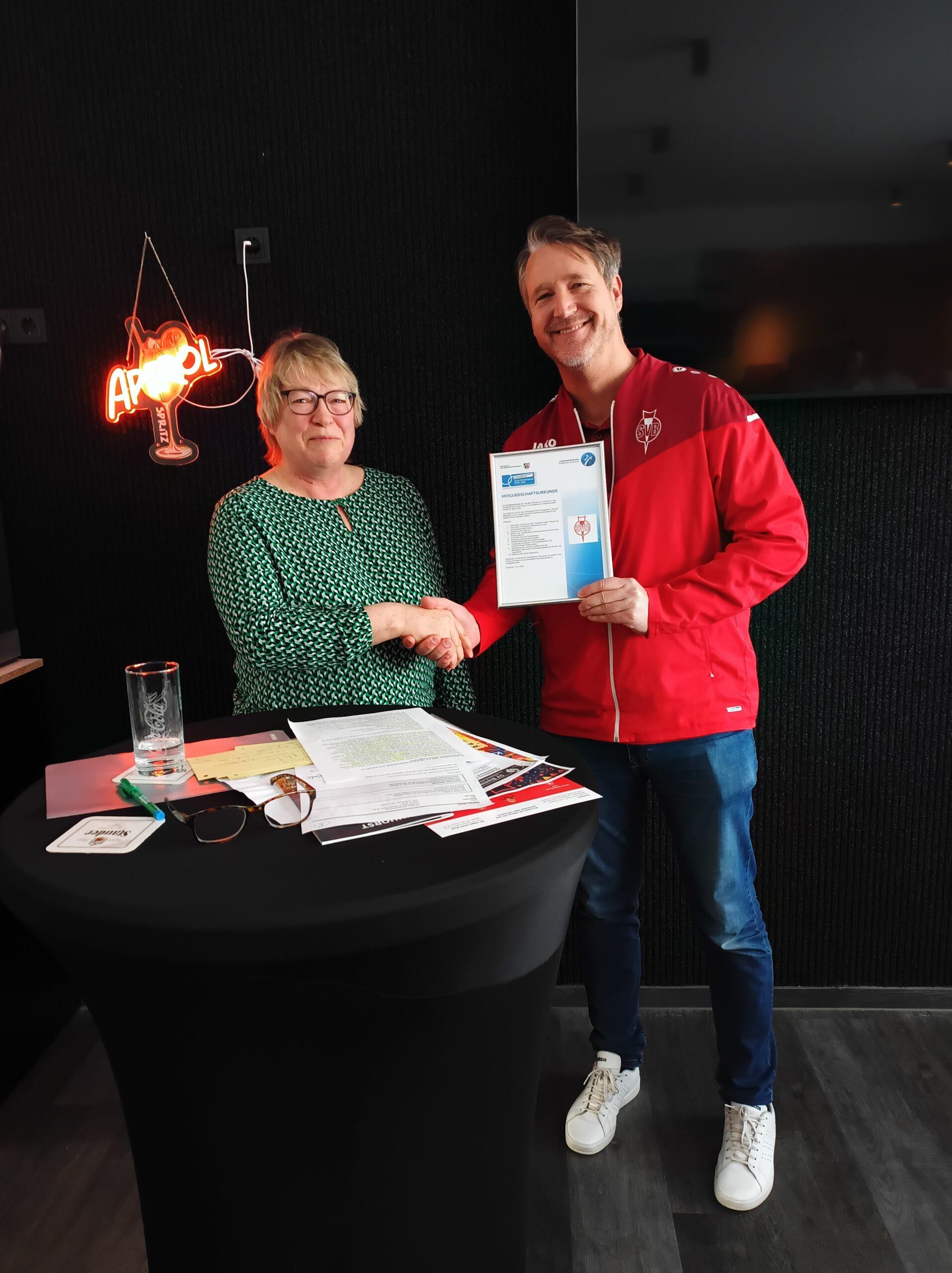 🏅 Ein besonderer Moment: Frau Hülemeyer vom Kreissportbund überreichte Sven Pieron die Urkunde zur Aufnahme in das Qualitätsbündnis zum Schutz vor sexualisierter & interpersoneller Gewalt im Sport.