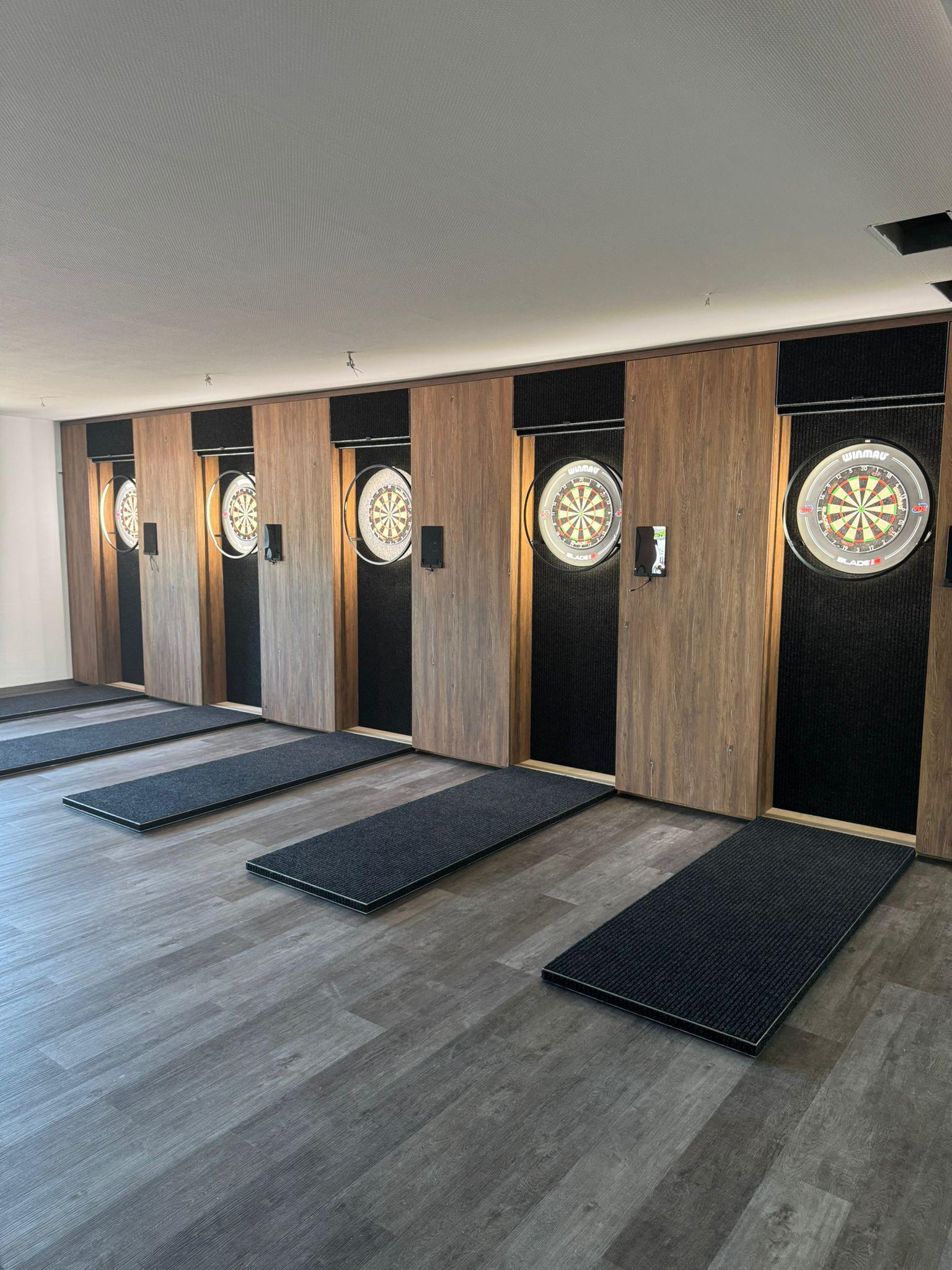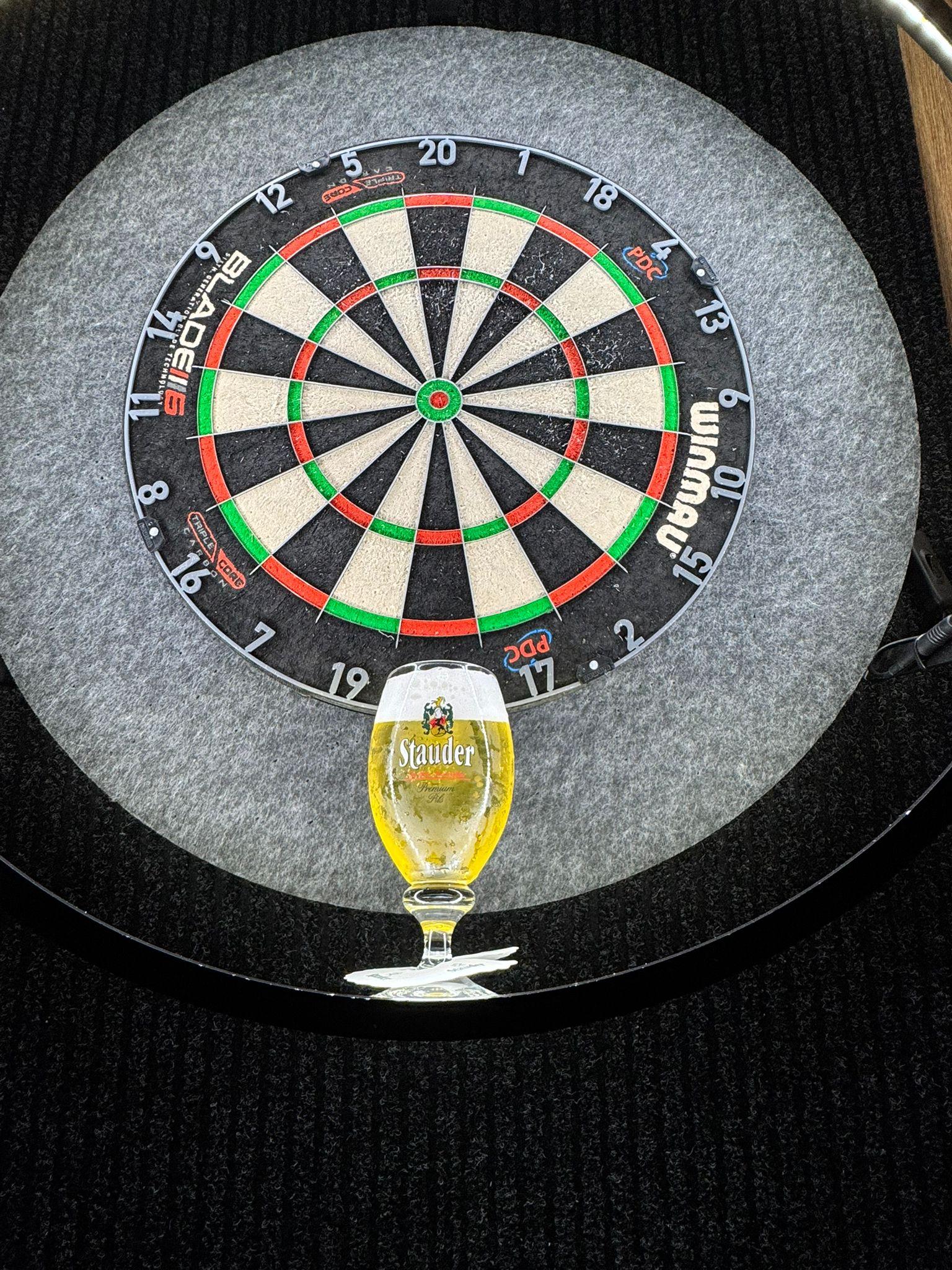 Die neue Dartswand gibt richtig was her